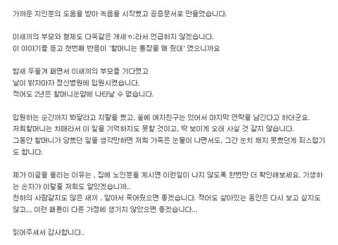 치매걸린 할머니는.. 맞은걸 기억도 못하고.. 이새끼에게 물었더니