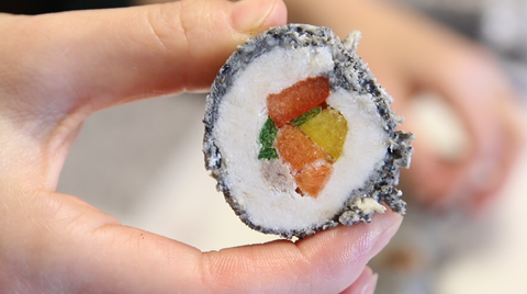 김밥의 주 재료는 닭가슴살이고 검은깨를 빻아서 김 역할을 해줄거에요 ㅎㅎ
