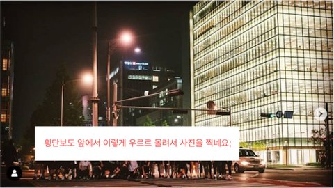 횡단보도를 점거하거나 단체로 뛰어가는 모습,