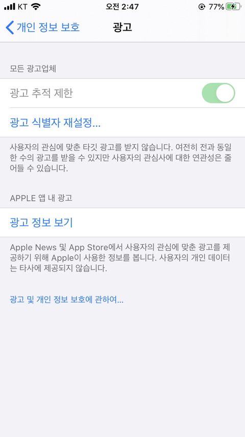 저 광고 추적 제한 끄는 버튼이 안눌러짐.. 해결 방법 아는사람 있니ㅠㅠ