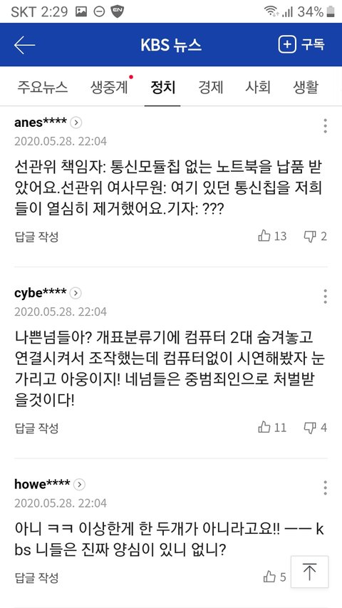 선관위 칩떼고 납품받았다고 해명하는 중