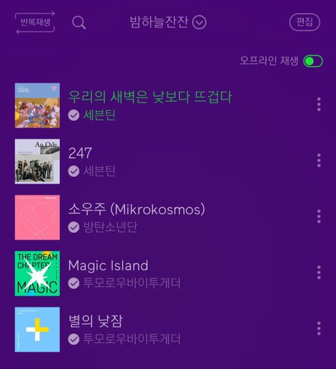 그리고 ❤세븐틴 우리의 새벽은 낮보다 뜨겁다... 이건 뭐 워낙 유명한 수록곡이라 다들 들어봤을거라 생각해 안 들어봣으면 진짜 꼭들어봐 저얼대 실패안함 이건 노래좋아서 눈물 고인수준?