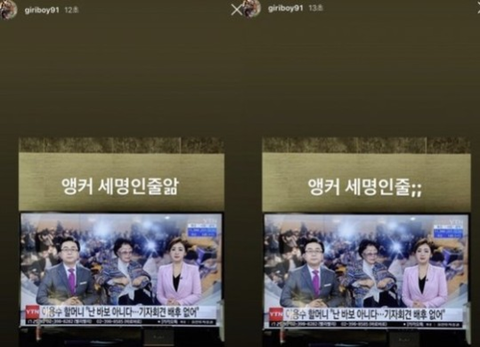 앵커가 세명인줄이란 간결한 문장과 위안부 이용수할머니께서 가운데 계신사진