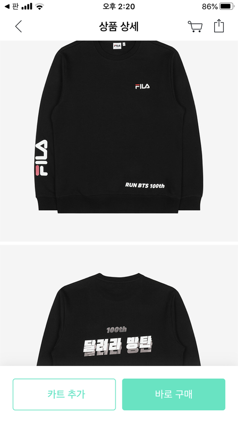 휠라가 방탄 달방 100회라고 맨투맨 까지 만들었어... 주접킹 휠라