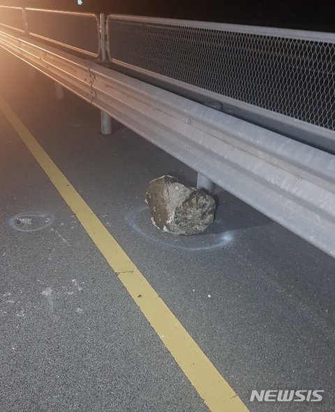 해당 도로 주변 야산에는 낙석 방지망이 설치돼 있으나, 돌덩이가 방지망을 뚫고 도로로 떨어진 것으로 보인다고 경찰은 설명했다.