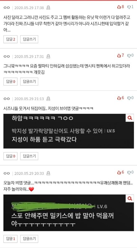 얘들아 사랑해 ㅠㅠㅠ 다들 이 댓글들 봤니 우리 계속 재밌게 놀자