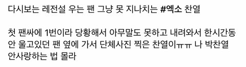 팬덤 생일 타투하고 항상 여러분은 제가 죽을 때까지 제 몸 안에 있어요 하는 우리 차뇨... 팬사랑 오지는 엑소 내에서도 팬사랑으로 절대 안 뒤쳐짐