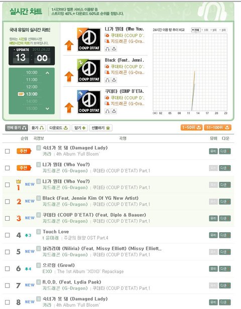 다행이 각종 음원차트 1위함