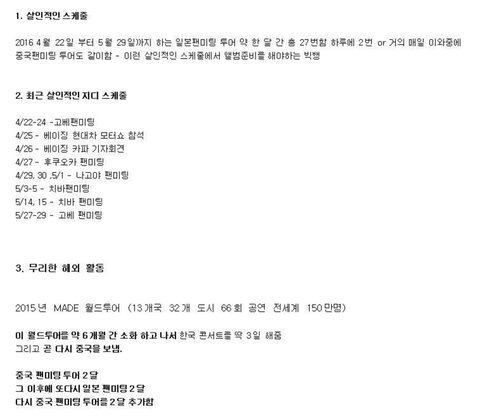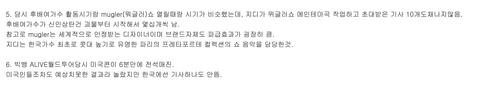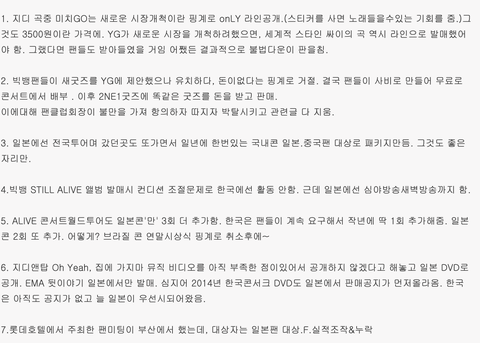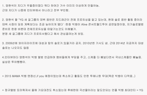 그외 지디 뮤비나 빅뱅 뮤비는 대부분 명품브랜드 협찬에 월드투어도 현대카드 아시아나가 협찬 해준거임. 한마디로 돈 적게 쓰고 돈은 와이지가 제일 많이 벌고 유명 브랜드 런웨이 곡 작곡한거 같은건 기사 1줄도 안내고 심지혀 워글러 패션쇼 못간게 이하이 골든디스크 박수셔틀 시닐려고 그런거였고 공연 관객수 같은건 누락시키고. 지금 와이지=패션=자체제작돌 이미지 만들어 준것도 지디인데