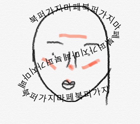 난 <페>저<북>렇<포>게<가> 광<지>대<마> 콧등 턱 입술 위 이마에 붙임