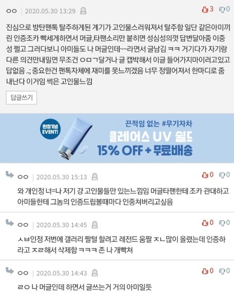 엔터 아미들 댓글 너무 맴찢...