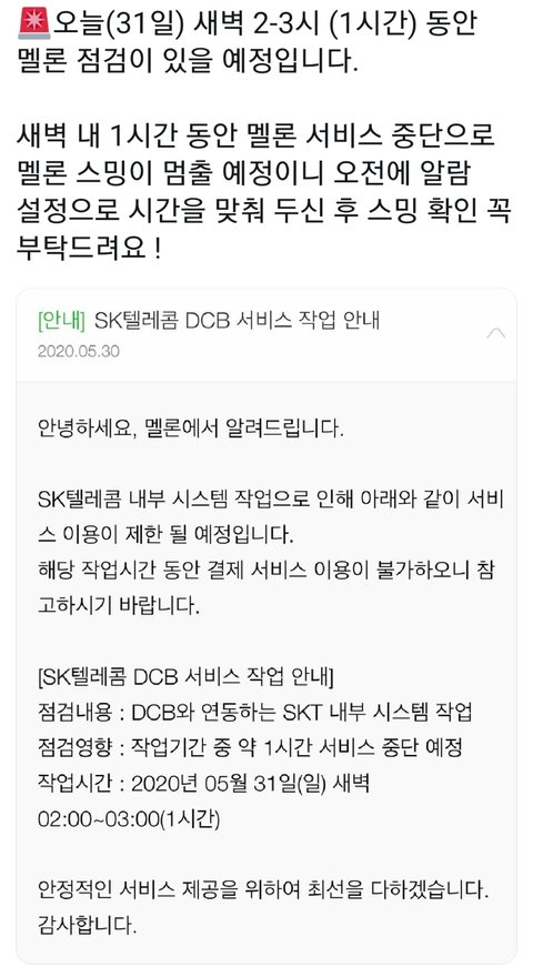 공추) 썩수 이따 새벽 2~3시 점검있음!!