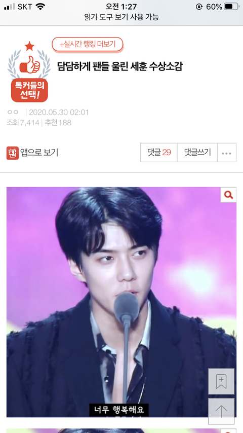 톡선에 세훈이 글 올라옴