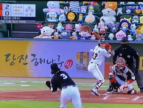 야구직관하면서 혼자 웃고있는 허니엘
