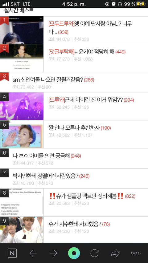 ++) 나 아미아니라고;; 방탄이 좋은게 아니라 악플러들 ㅈㄴ 싫어하는 사람이라고ㅠ 다른 여돌 까지 말라는 글에는 판녀들 미쳤다면서 왜 여기서는 불만이냐고ㅋㅋ 짜증난다 그리고 진짜 피코질 ㅇㅈㄹ 좀 하지마 뭔 피코질이야 그냥 실베 캡처만 한거 봐도 니들이 잘못한거 알겠으니까 그런말이 나오는거지 내가 글썼을 당시에 이거보다 훨씬 심했고 안그래도 까들 많은데 딱봐도 특정 아이돌만 졸라 까이고 있었잖아ㅋㅋ 댓글보면 더 가관이고 그거에 추천 계속 달리고ㅋㅋ 니네가 이러니까 사람 죽일듯이 욕해도 정당한줄 세뇌당하겠다