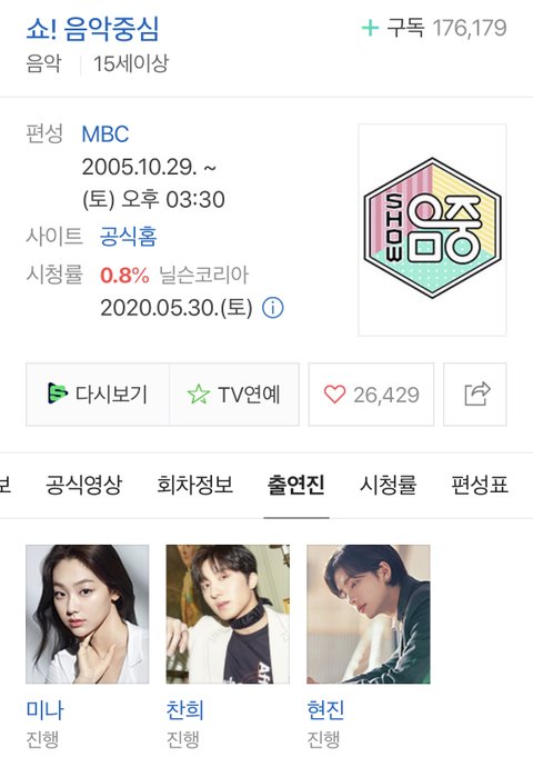 미나가 약2년여간 음악방송 엠씨 하다가 하차하는거보니 뭔가 뭉클하네 미나 후임으로는 누가올까?