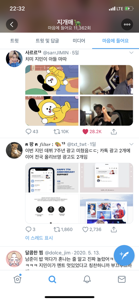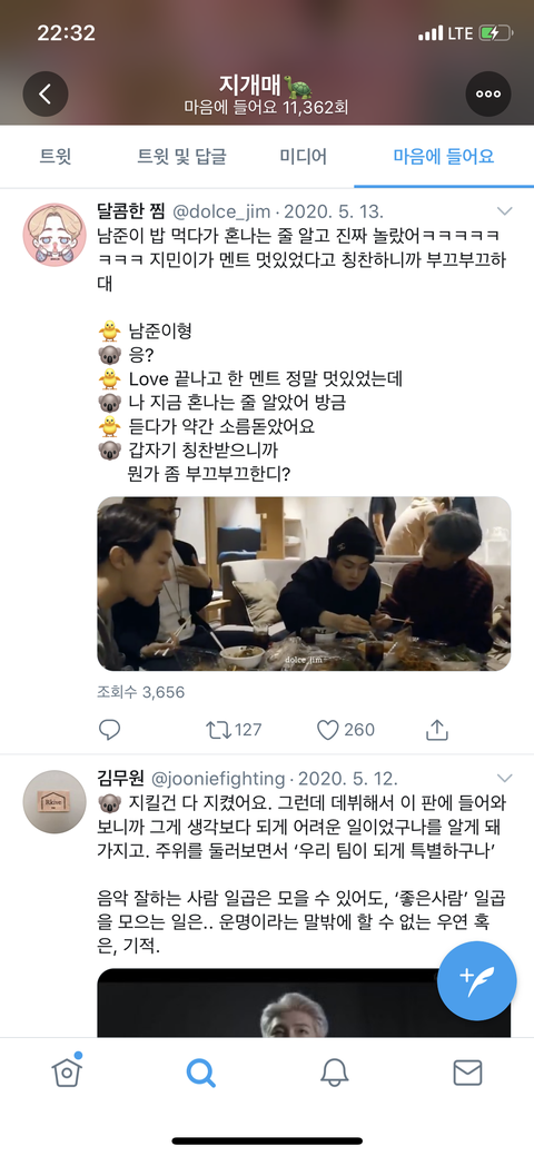 주접 장난 아닝데 요즘에도 들어가서 정주행 함