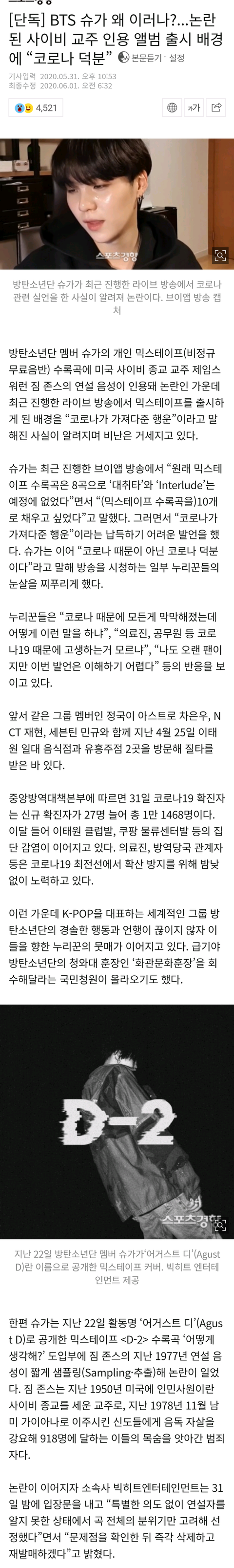 [단독] BTS 슈가 왜 이러나?...논란된 사이비 교주 인용 앨범 출시 배경에 “코로나 덕분”
