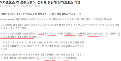 여자감옥에 갇힌 트랜스젠더 남성