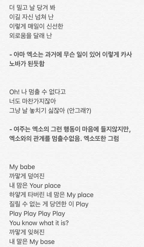 솔까 가사고 뭐고 걍 볼드체 해석만 봐 과몰임 ㅆㄱㄴ