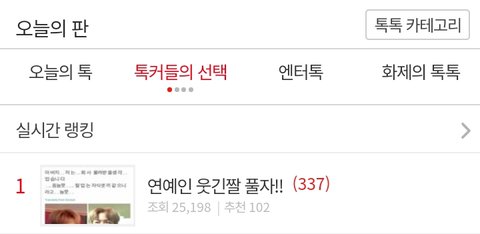 +와 미친 ㅋㅋㅋㅋㅋ 학교가면서 판 보려다 톡선에 내 글 있어서 놀랬네.. 그것도 1위라니 관심가져줘서 고마워 ❤❤ 나도 갤러리에 웃긴짤 보이면 댓글 달게 ㅎㅎ 이따가 학교 끝나면 연예인 웃긴 일화 올릴겡!!! 다들 좋은 하루 보내 ❤