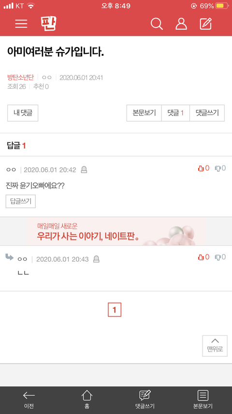 ‼️⚠️밑 아미여러분 슈가입니다 여기서봐+댓추가❗️