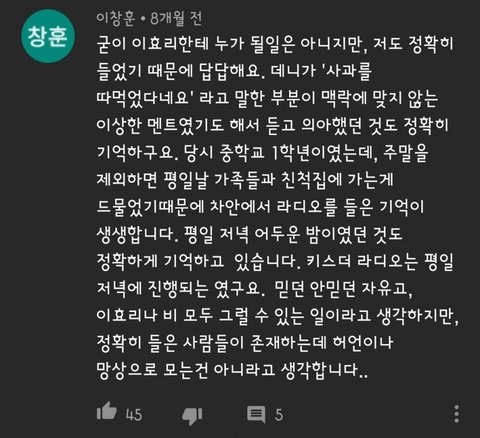 나도 내가 실제로 들은줄 착각하고 있었다가