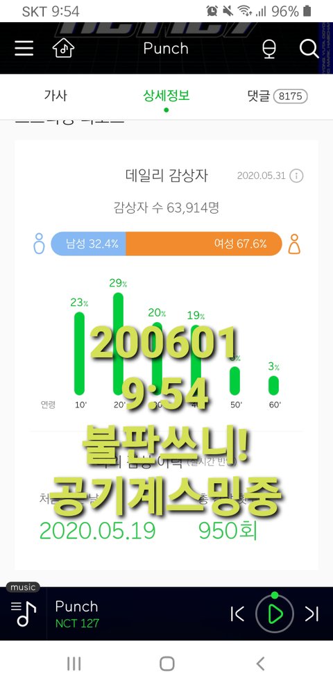 10시맞춰 올리려고 스밍횟수 미리 캡쳐했어!! 양해부탁해ㅠㅠㅠ