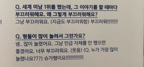아까 탐라에서 다시 봄 윤기야 텽이 칭찬 감옥에 가둬서 얼레리꼴레리 많이 해 줘라 광대 제자리 못찾게 /근데 이거 언제였지? 내머리는 덕질에 매우 부적합 ㅠㅠ