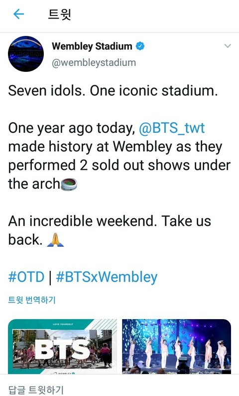 웸블리 스타디움 공계에 1주년 기념 사진 올라왔어