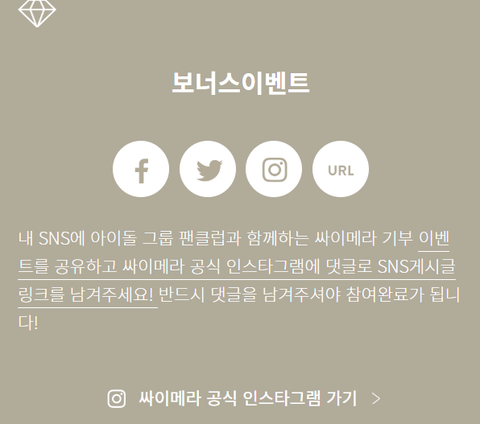 프로모션 페이지(http://m.cymera.com/event/idol)를 개인 SNS에 공유해주셔도!