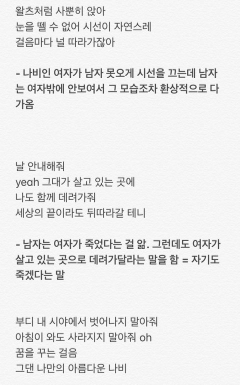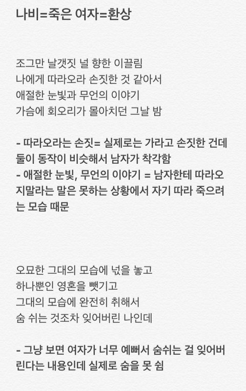 이번엔 나비소녀 해석이야 너무 유명해서 아마 카스세대 애들은 대강 알텐데
