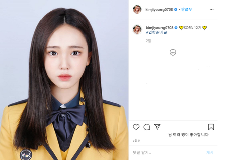 자신의 SNS에 "입학 준비 끝"이라는 글과함께 증명사진을 공개함