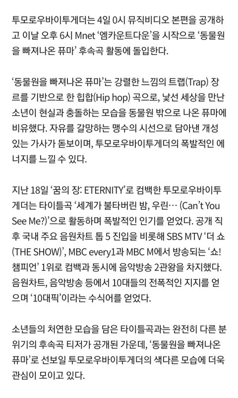 TXT 동빠퓨 후속 활동시작, 4일 엠카 출격
