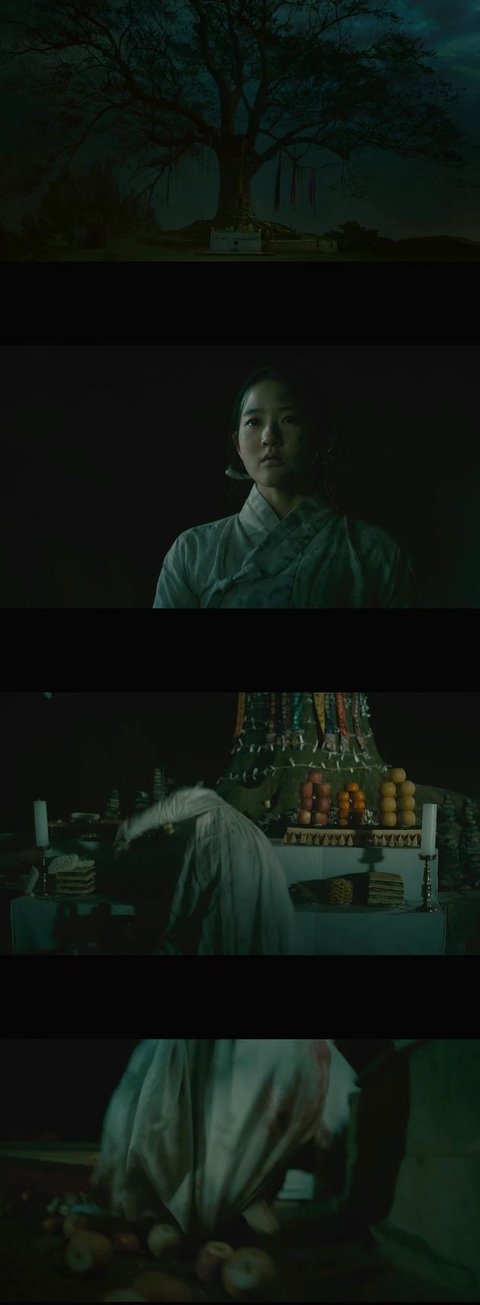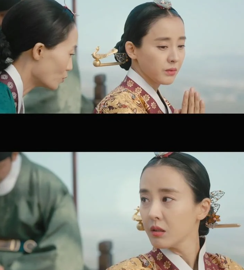 같은 시각, 아픈 세자를 위해 신목에 기도를 드리는 중전