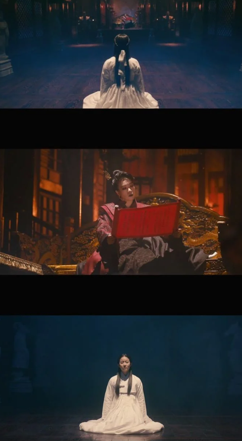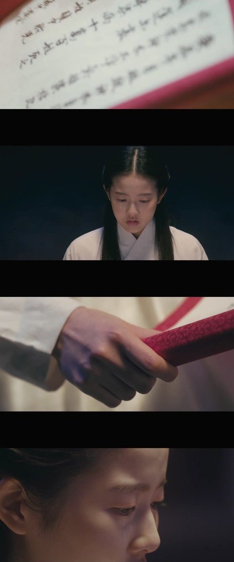 자신의 다른 죄목을 보고 손을 부들부들 떨면서 눈물을 흘리는 월주