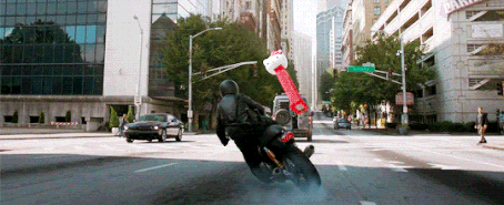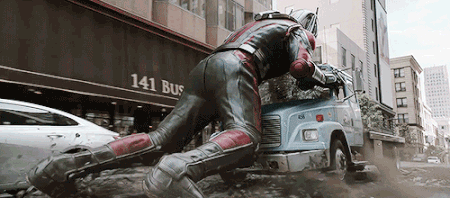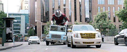자이언트맨으로 변신해서 트럭을 킥보드처럼 타고 다니기