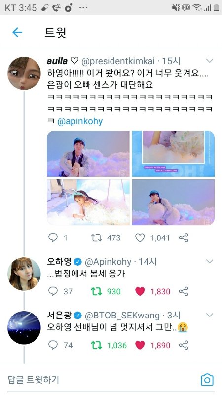 와 근데 진짜 ㄹㅇㄹㅇ개친한가봐 ㅋㅋㅋㅋㅋㅋㅋ 본문 말하는건 아니고 법정에서 봅세 응가 이러는거 ㅋㅋㅋㅋㅋ서은광이 6살 오빠일텐데 ㅈㄴ 편하게 대하넼ㅋㅋㅋㅋㅋㅋㅋㅋ