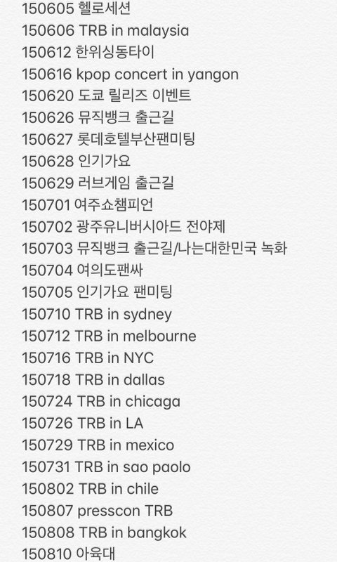 태앱이나 입출국, 비공개 스케쥴은 빼셨대