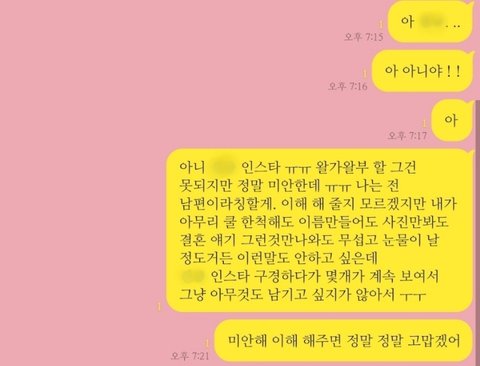 사람에게 상처입어 sns를 잠시 닫았어요 그러다 친구 인스타를 구경하던중 제 결혼식 사진이 여러장 있더라고요.