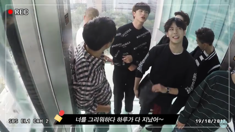 2017년 10월 19일 이 엘리베이터에서 비투비가 그리워하다를 부른 후 그리워하다가 대박이 남