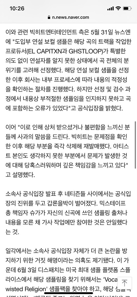 넥히트 공식 뜸 입장 변동 x