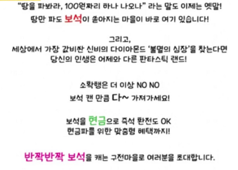 땅에서 보석을 캘 수 있는 마을이 있다고 함