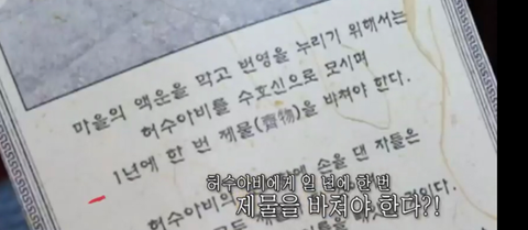 제물을 바쳐야 한다는 충격적인 내용이 적혀있고,,,