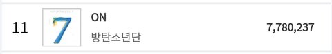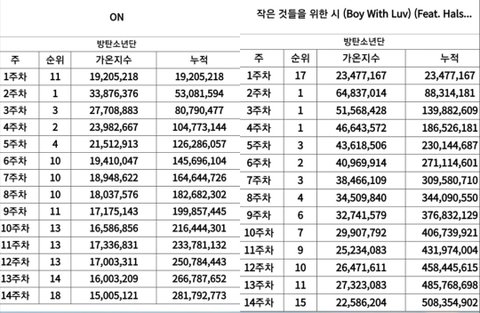 현재까지 ON 가온 누적치이고 작은시랑 비교분이야