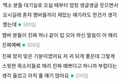 엑소는 그냥 다 착한것 같음 같이 노는것도 보면 그냥 고딩들 같고ㅠㅋㅋㅋㅋㅋㅋ 순둥이들이면서도 단단함이 넘 멋짐