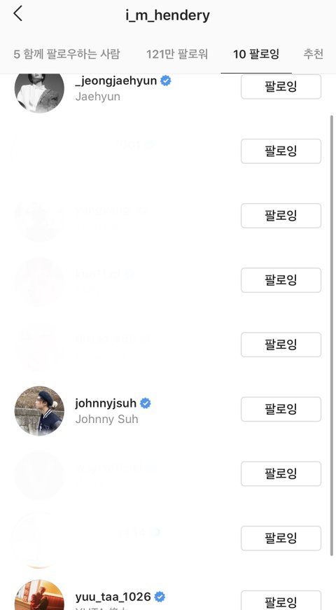 헐 헨드리가 일이칠멤들 인별 팔로우함