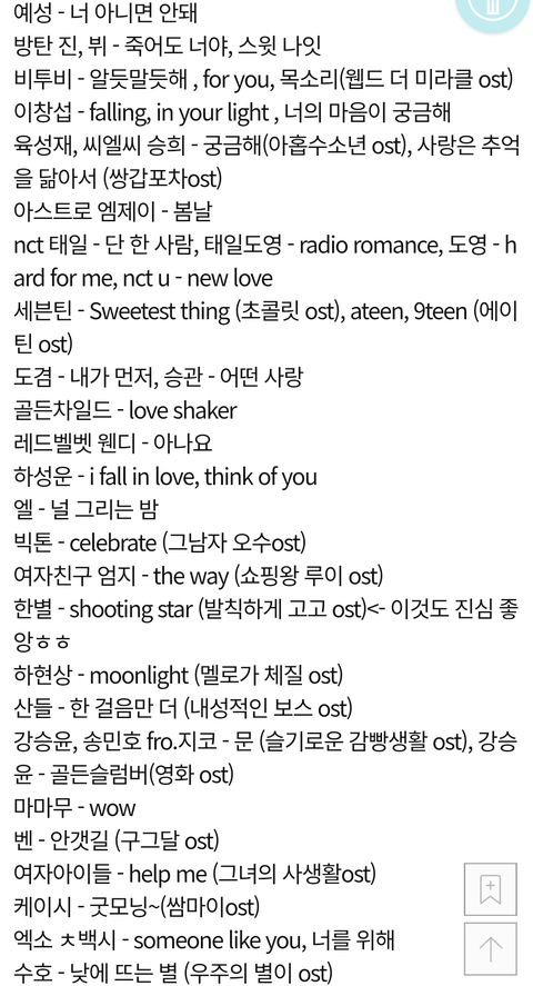 노래 추천해준 댓쓰니들 삭제할까봐 언능 찾아듣고 리스트에 추가하는중ㅋㅋ다들 고마와~~
