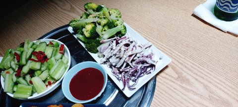 이제는 다른 메뉴로 오징어 브로콜리 숙회나 해먹자 하면서