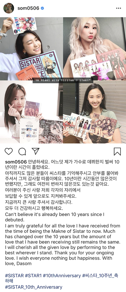 헐... 씨스타 데뷔 10주년이래 ㄷㄷㄷㄷㄷㄷㄷ